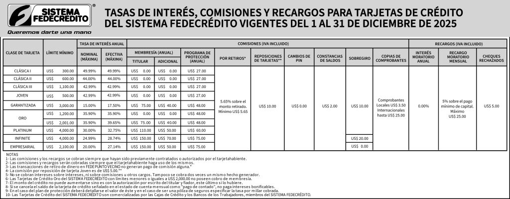 - Retiro de efectivo en Cajeros Automáticos FEDE RED 365 y otras redes a nivel local e internacional, FEDE PUNTO VECINO y demás puntos de atención de las Cajas de Crédito y los Bancos de los Trabajadores del SISTEMA FEDECRÉDITO.